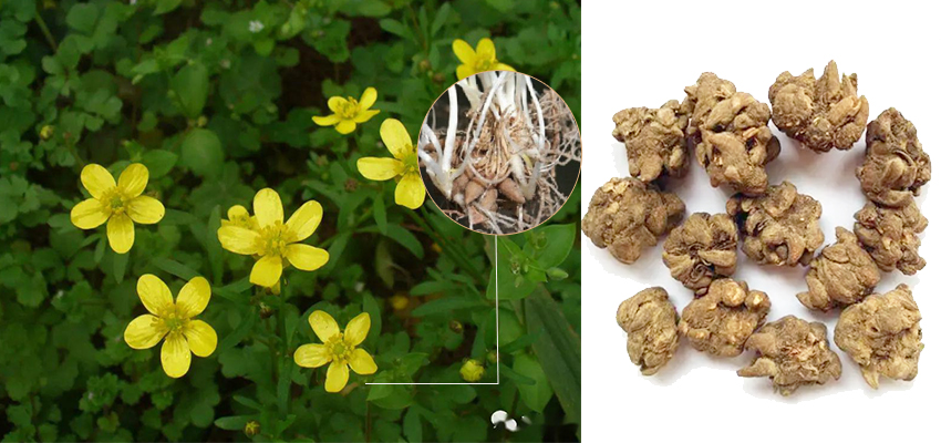 种草药生长在南方,别名小毛茛、三散草。味甘、辛,性微温。归肝、肺经。它的中药名是猫爪草,能化痰浊,消郁结,化痰散结,解毒消肿。用于瘰疬未溃、淋巴结结核。