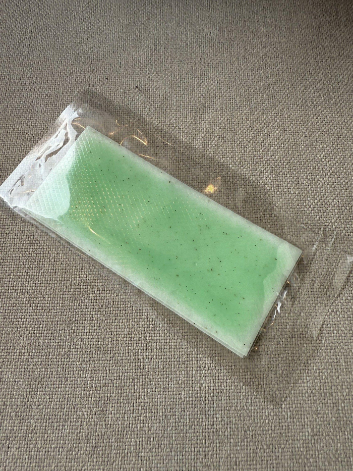 使用之前,有过使用降温喷雾导致过敏经历的记者仔细研究起了成分表。它的主要成分有聚酯保护膜、水刺布、亲水性高分子凝胶、植物提取物(藿香、薄荷、艾草)。撕开包装,可以闻到一股淡淡的草药香,贴至皮肤上可以感觉到缓缓的凉意。在同样的高温环境下,贴在皮肤上撕下,再次贴回至皮肤的凉感会比直接贴敷更为强烈。