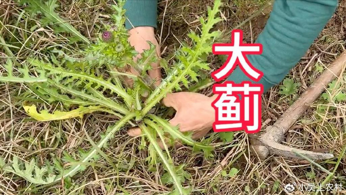 大蓟始载本草为《名医别录》,与小蓟同条,名“大小蓟根”。它自古以来就是一种中药材,药材名为大蓟,味甘,微苦,性凉,归心、肝经。