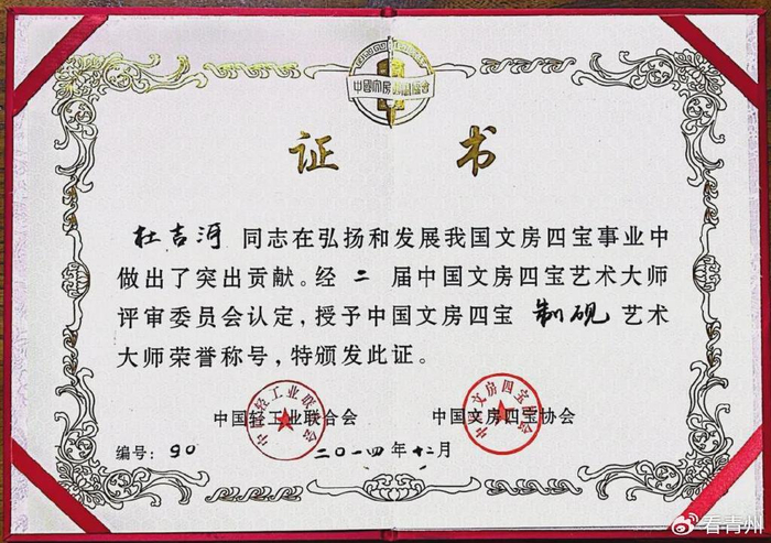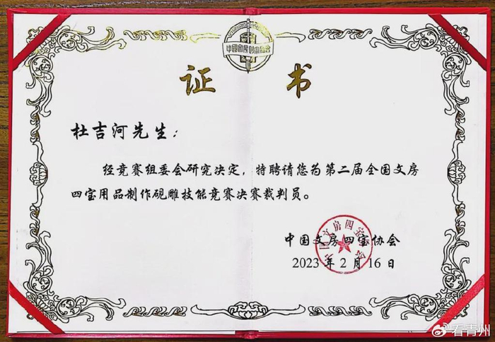 杜氏砚庄作为弘扬奇石文化与青州红丝砚文化的重要载体,以收藏鉴赏、研究交流、设计创作、展览销售为一体,搭建起综合性高端优质服务平台,在传承鲁砚文化、彰显地域特色、推动红丝石砚文化方面发挥了重要作用。传承人杜吉河,为中国文房四宝协会副会长、山东省鲁砚协会副会长,获评“中国文房四宝制砚艺术大师”“2019-2024年度中国文房四宝行业先进个人”等荣誉称号。