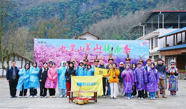 游客们漫步花溪景,一路上,羌歌、羌舞、羌绣等非遗展演接连不断,还有羌服换装拍照、创意打卡点、花间围炉煮茶、挖野菜等体验项目趣味十足,为此次春日之行增添别样风情。如今九皇山辛夷花正含苞待放,预计将在3月中旬开始陆续绽放,届时漫山粉黛,浪漫至极。