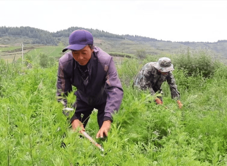 仲夏时节,走进甘肃漳县贵清山安家门村,阵阵沁人心脾的艾草清香扑面而来。放眼望去,广袤田野间,艾草绿意葱茏,农户们手持镰刀,穿梭其中,熟练地收割、捆扎,脸上洋溢着丰收的喜悦,勾勒出一幅生机勃勃的乡村丰收画卷。