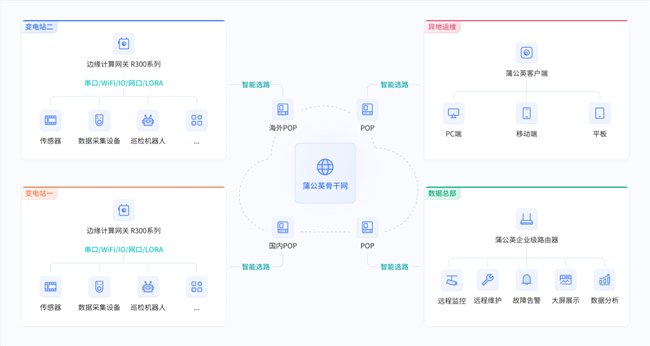 ● 贝锐蒲公英自研全球智能链路、弱网优化技术:电力设备监控数据跨地区流畅、实时传输