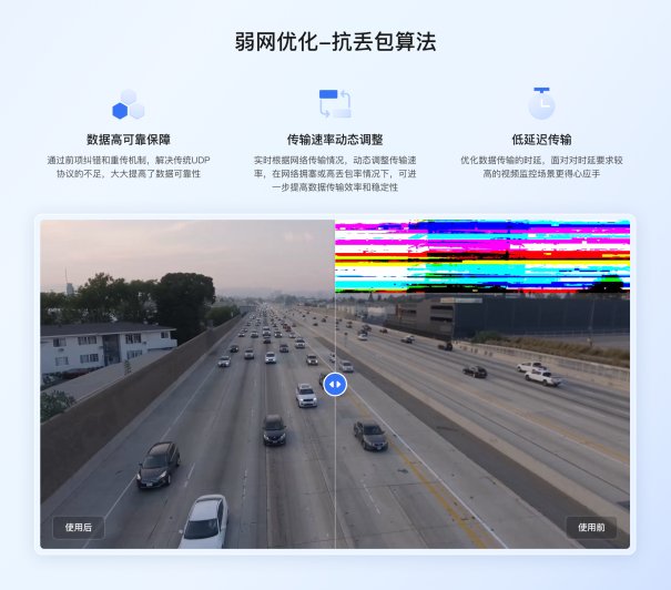 电力巡检过程中会产生大量的高清视频、图像和音频数据,对网络的带宽、延迟与稳定性提出了极高要求。针对电力设施的视频监控数据,蒲公英在全球智能链路基础之上还可通过自研弱网优化技术,自动识别弱网、丢包、抖动等异常网络状况,动态调整视频流优先级、压缩与容错策略,保证重要监控画面即使在网络拥堵、高丢包等复杂环境下依然流畅、不断流、不花屏。