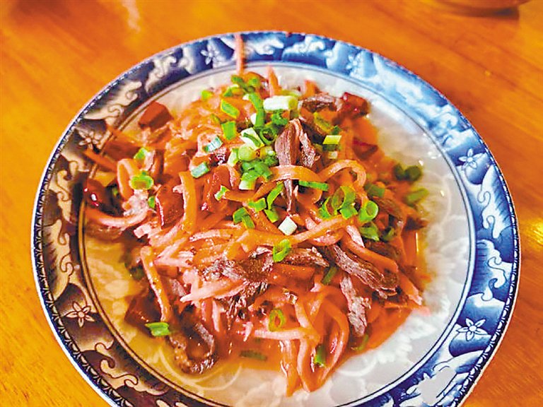这道酸萝卜炒牛肉也出现在了旺扎家的团圆饭上,厚切的牛肉带着恰到好处的酸味,深受一家人喜爱。“这道菜色香味俱全,大家都爱吃。”旺扎爷爷笑着说。