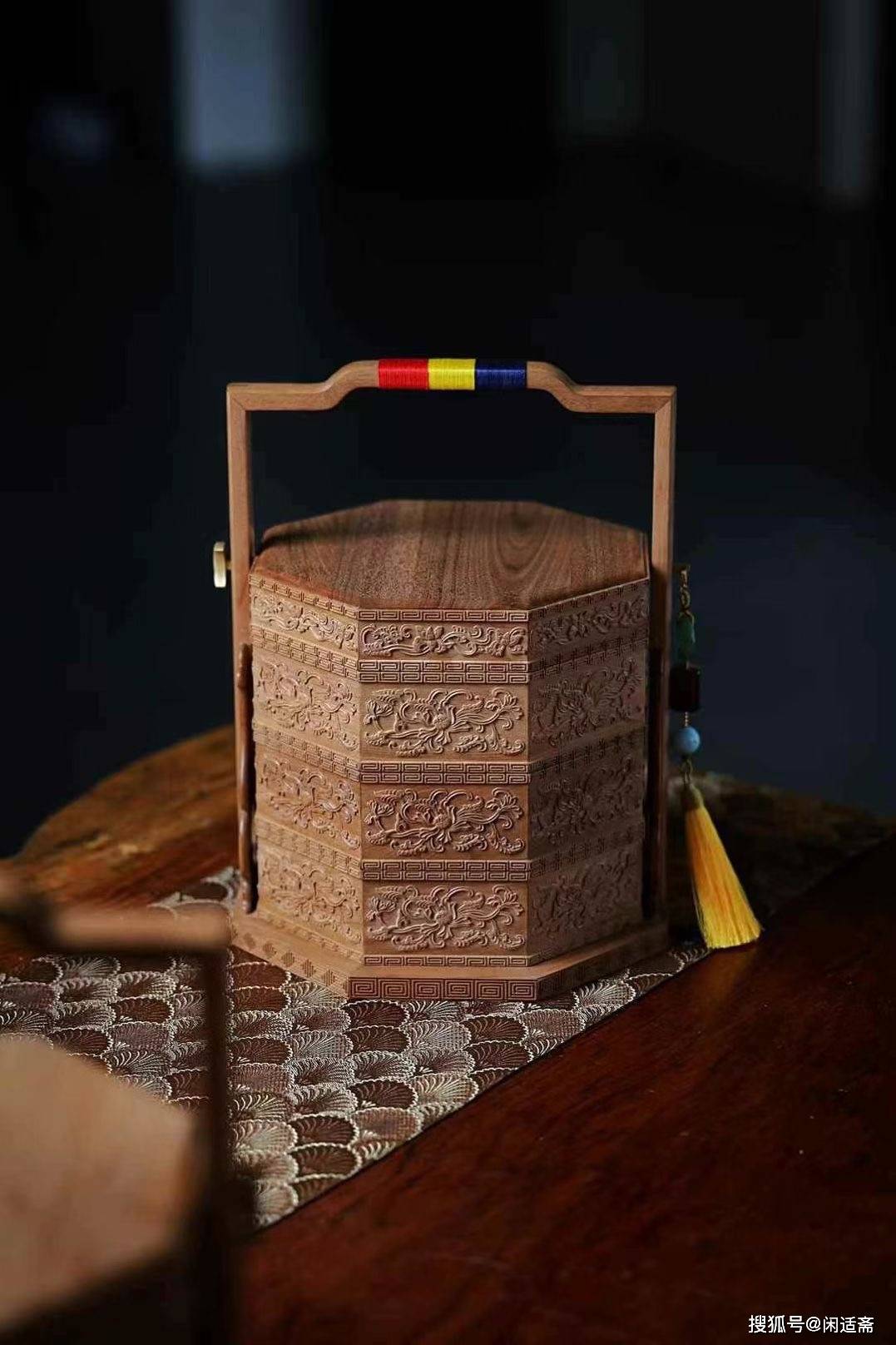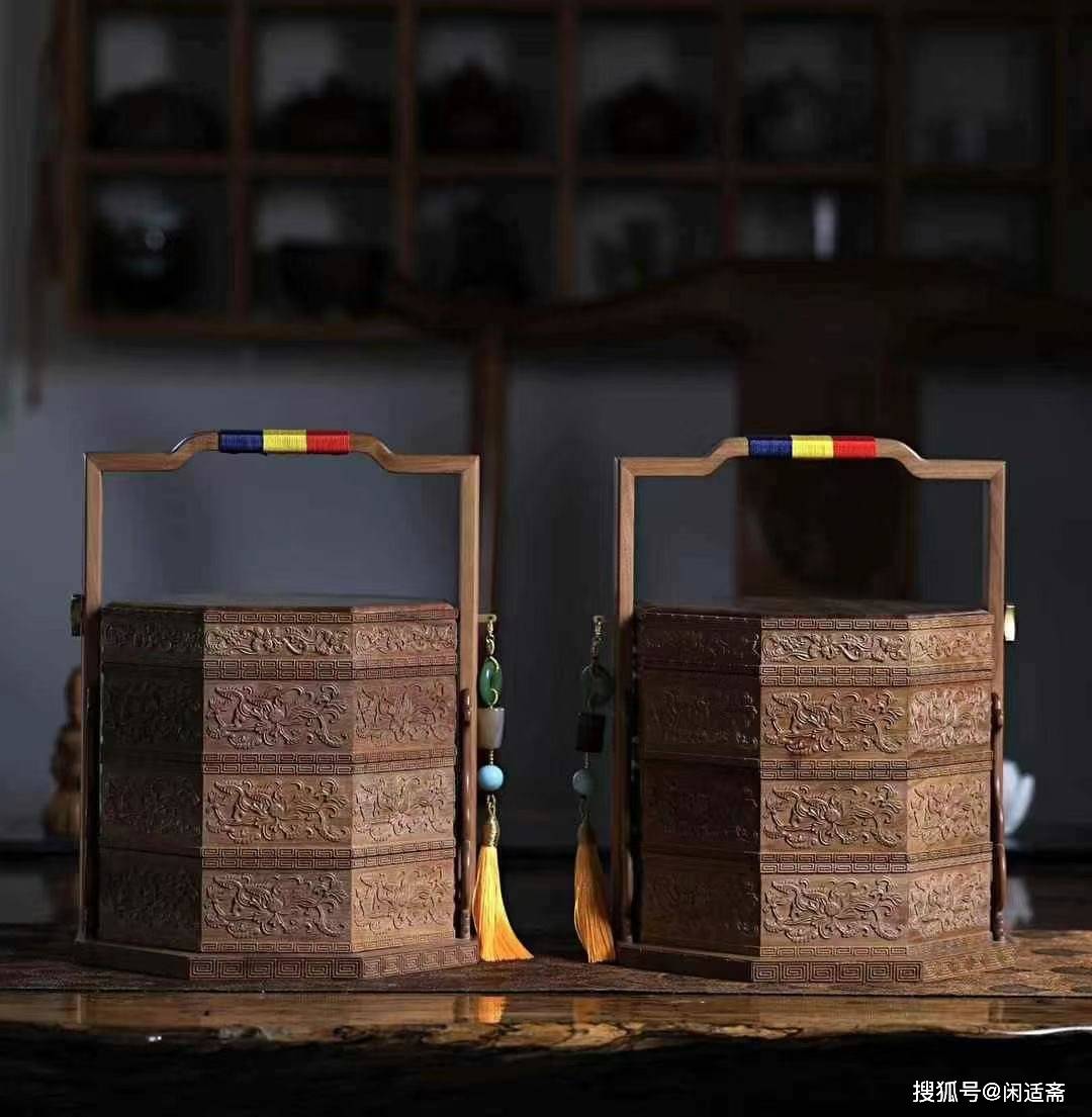 提梁盒起源于久远之前,起初多为民间运送食物或小件货物的实用器具,常以竹、木简单制成,质朴而实用。至宋代,提梁盒流行开来,形制愈发多样。而到了明清,在文人雅士的推崇与参与设计下,迎来华丽蜕变。材质选用黄花梨、紫檀等名贵木材,工艺上精雕细琢,融入雕刻、镶嵌等技法,从单纯的实用品摇身一变,成为兼具实用与艺术价值的珍品,频繁现身于文人外出会友、雅集场合,承载着笔墨纸砚、印章等文房雅物,更是书房案头的精致陈设,见证了无数文人的才情挥洒与诗意生活,蕴含着深厚文化底蕴。