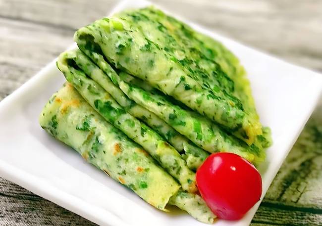 ③ 平底锅刷少量油,倒入面糊摊成薄饼,小火煎至两面金黄即可。