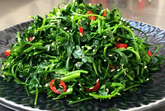 ③ 大火快炒荠菜2-3分钟至变软(全程约3分钟),加少量盐调味即可出锅。