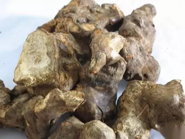 狗宝——又名狗结石、狗黄金、金蛋子,呈圆球形或椭圆形,是从狗体内取出的狗胃结石、肾结石及胆结石。狗宝呈圆球形或椭圆形,大小不一,一般直径1.5~5厘米。表面灰白色或灰黑色,略有光泽,有多数类圆形突起。质重,坚实而细腻,以指甲刻之可留痕迹。破而显同心环状层纹,近中心部位较疏松,但多不能分离。气微腥,味微苦,嚼之有粉性而无砂性感觉。性味甘、咸,平。功能主治将逆气,开郁结,解毒。用于噎膈反胃,痈疽疮疡。