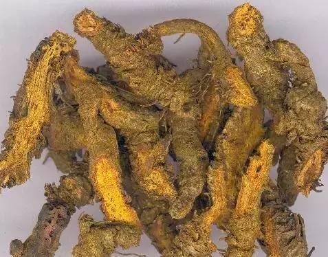 黄连——株高15-25厘米。根状茎黄色,常分枝成簇生状,形如鸡爪,节多而密,生多数须很。复叶基生,叶片卵状三角形,3-5全裂,裂片再作羽状深裂。春季开黄绿色花,2歧或多歧聚伞花序,有花3-8朵。春末夏初结果。种子长椭圆形,褐色。根状茎用作中药时有泻火解毒,清热燥湿功效,可治时行热毒、高热烦躁、泄泻痢疾、口疮、痈疽疔毒等症。药理试验证明,有抑菌及抗病毒、抗原虫作用,并能降低血压,扩张冠状动脉。黄连含小檗碱、黄连碱等多种生物碱,另含黄柏酮、黄柏内酯等成分。