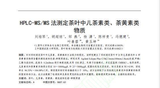 [1]刘培琴.HPLC-MS/MS 法测定茶叶中儿茶素类、茶黄素类物质,